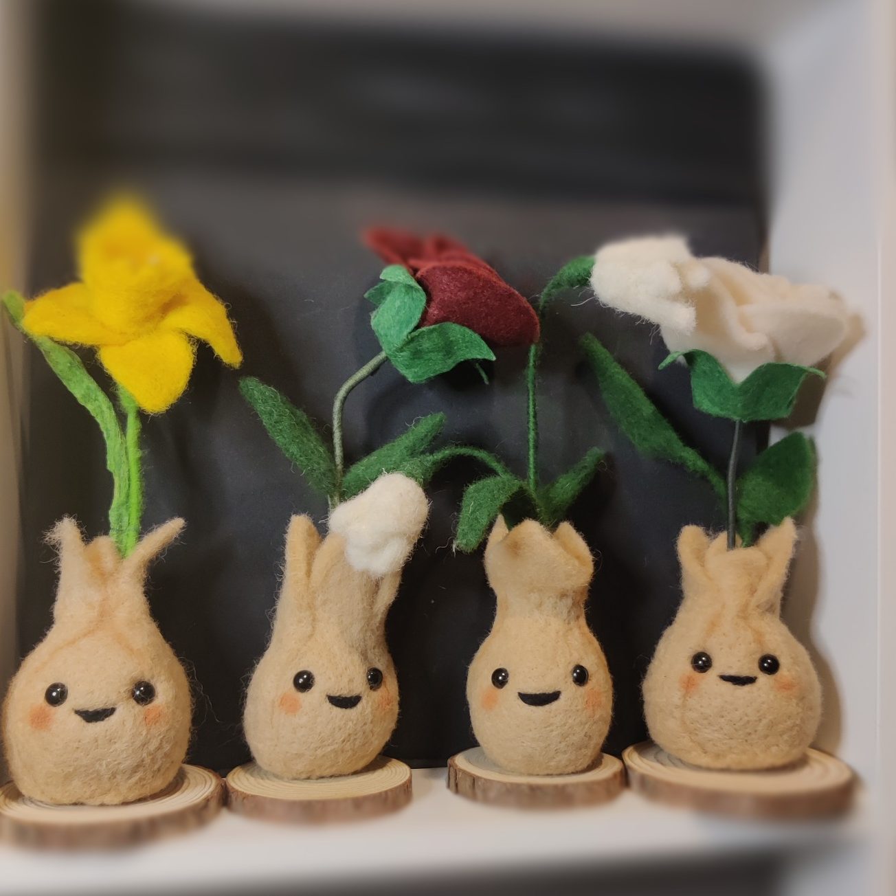Curious and cheerful, Mushlings are often spotted near old tree roots, damp forest paths, and places where fallen leaves gather. Each one carries its own tiny personality, shaped slowly by hand from wool.